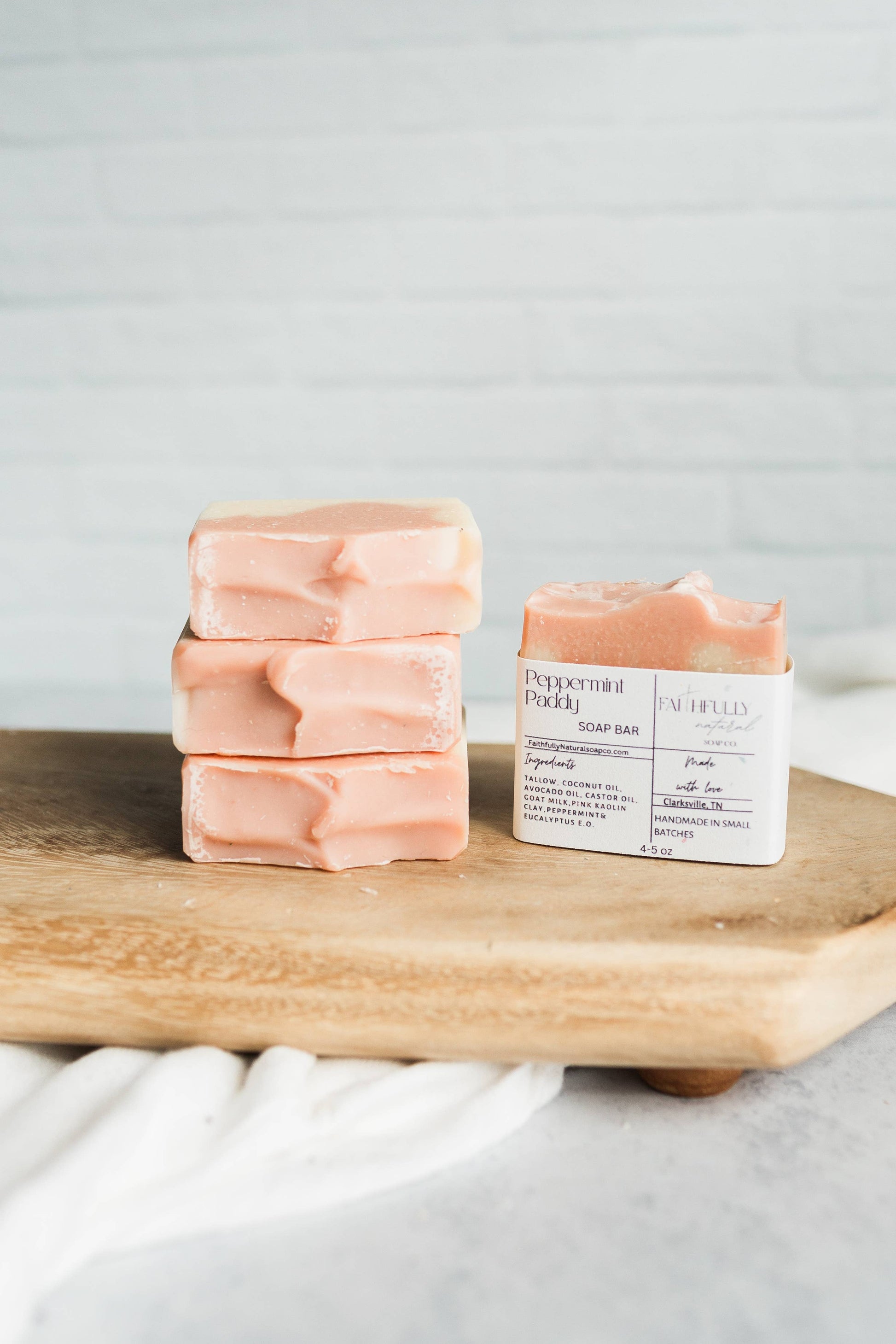 Ingredients: Tallow, Avocado Oil, Castor Oil, Coconut Oil, Goat Milk, French Pink Clay, Kaolin Clay Eucalyptus/Peppermint EO Benefits: *All Bars may be used on face/body. Faithfully Natural Soap Co. does not make any medical claims for skin ailments or conditions. Created in a facility where coconut/tree nut products are used.